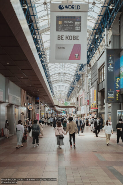 あえて言うなら、BE KOBEという看板が気になったのでセンター街全体を入れて撮影。