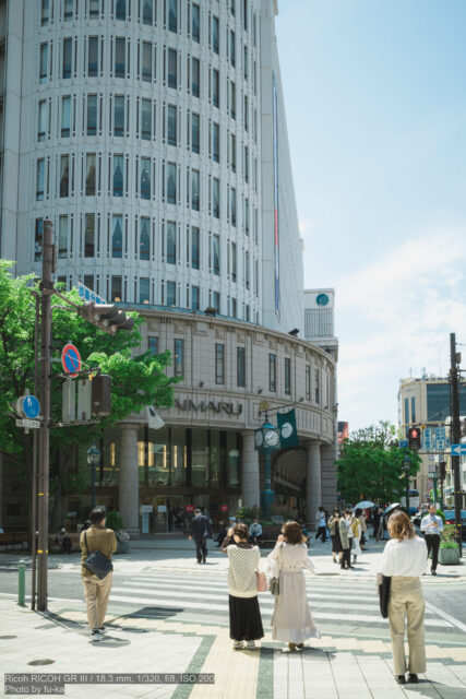 大丸の建物を撮りたかったので、縦構図でいらないものを入れないようにしたのと、